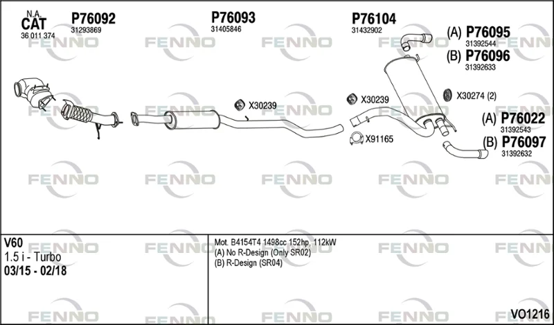 VOLVO V60 I (155) T3 - Výfukový systém - kompletní