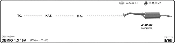 MAZDA DEMIO (DW) 1.3 i 16V (DW3W) - Výfukový systém - kompletní od 8/1998 do 4/2000, 1324 ccm, 53 kW, 72 hp, B33L, B34P, B35J, Šikmá zadní část