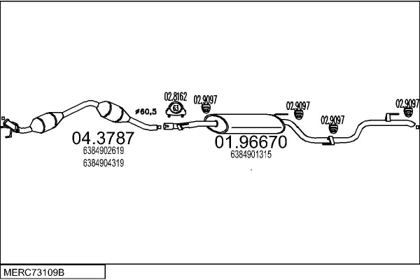 MERCEDES-BENZ VITO autobus (W638) 110 CDI 2.2 (638.194) - Výfukový systém - kompletní od 3/1999 do 7/2003, 2148 ccm, 75 kW, 102 hp, OM 611.980, autobus