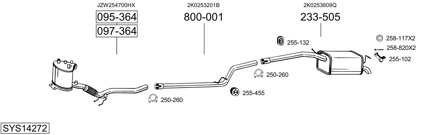 VW CADDY IV velkoprostorová limuzína (SAB, SAJ) 1.6 TDI - Výfukový systém - kompletní od 5/2015 do 11/2017, 1598 ccm, 55 kW, 75 hp, CAYE, velkoprostorová limuzína