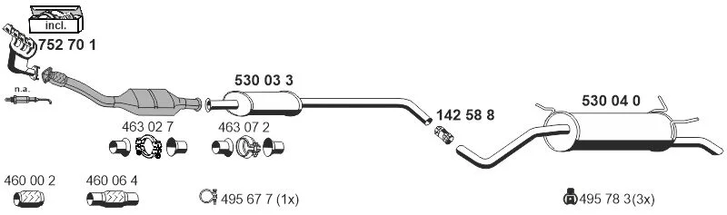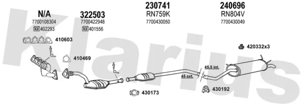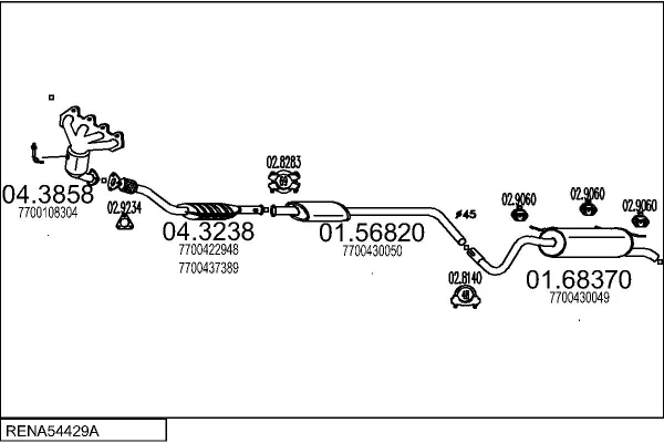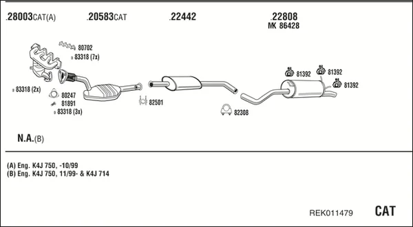 RENAULT MEGANE I Grandtour (KA0/1_) 1.4 16V (KA0D, KA1H, KA0W, KA10) - Výfukový systém - kompletní od 3/1999 do 8/2003, 1390 ccm, 70 kW, 95 hp, K4J 714, K4J 750, kombi