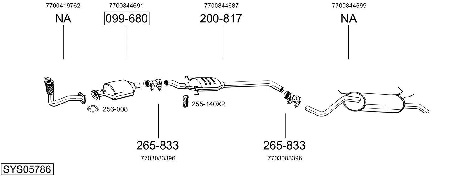 RENAULT MEGANE Scénic (JA0/1_) 2.0 i (JA02, JA0G) - Výfukový systém - kompletní od 1/1999 do 9/1999, 1998 ccm, 80 kW, 109 hp, F3R 750, F3R 751, F3R 791, F3R 796, F3R 797, F3R 798, velkoprostorová limuzína
