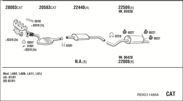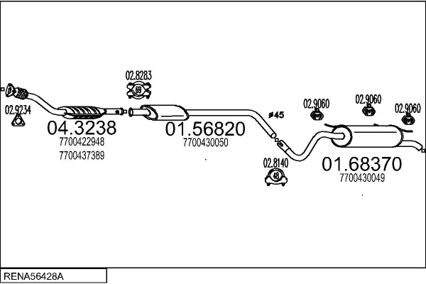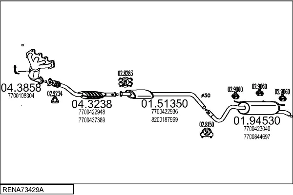 RENAULT MEGANE I Classic (LA0/1_) 1.6 16V (LA00, LA04, LA0B, LA11, LA16, LA19, LA1J, LA1K,... - Výfukový systém - kompletní od 3/1999 do 7/2003, 1598 ccm, 79 kW, 107 hp, K4M 700, K4M 701, K4M 706, K4M 708, K4M 709, limuzína