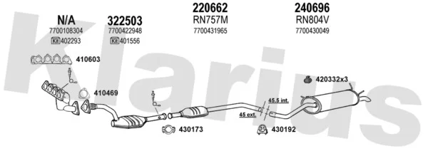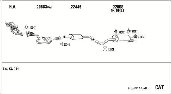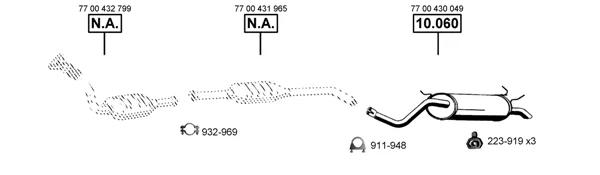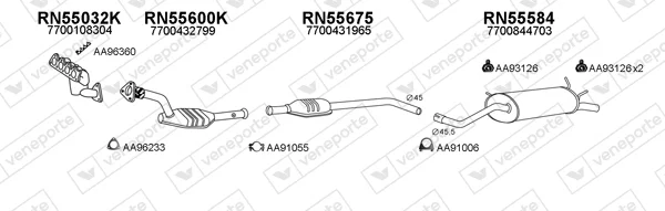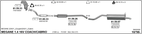 RENAULT MEGANE I Cabriolet (EA0/1_) 1.4 16V (EA0D, EA1H, EA0W, EA10) - Výfukový systém - kompletní od 3/1999 do 8/2003, 1390 ccm, 70 kW, 95 hp, K4J 714, K4J 750, Kabriolet