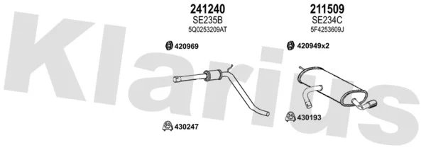 SEAT LEON (5F1) 1.0 TSI - Výfukový systém - kompletní od 5/2015 do 8/2020, 999 ccm, 85 kW, 115 hp, CHZD, DKRF, Šikmá zadní část