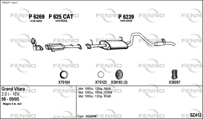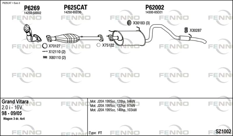 SUZUKI GRAND VITARA I (FT, HT) 2.0 4x4 (TA52, TL52, SQ420) - Výfukový systém - kompletní od 3/1998 do 7/2003, 1995 ccm, 94 kW, 128 hp, J20A, uzavřený terénní vůz