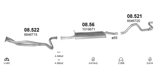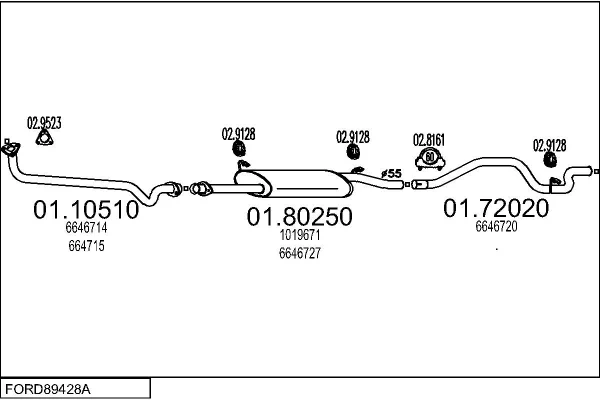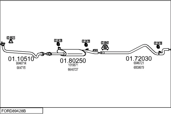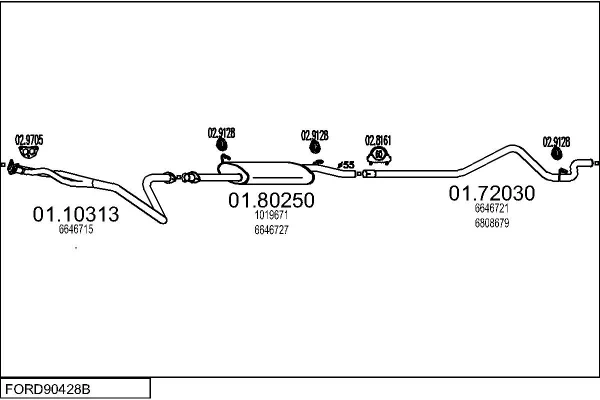FORD TRANSIT autobus (E_ _) 2.5 DI (EBS, EDS, EGL, ESS, EUS) - Výfukový systém - kompletní od 9/1991 do 7/1994, 2496 ccm, 59 kW, 80 hp, 4DA, autobus
