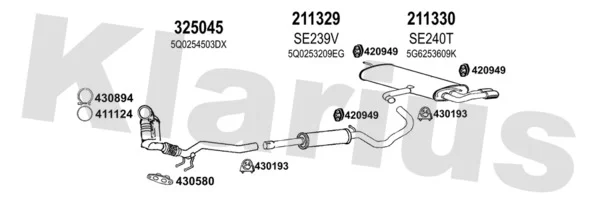 VW GOLF VII (5G1, BQ1, BE1, BE2) 1.0 TSI - Výfukový systém - kompletní od 5/2015 do 8/2020, 999 ccm, 85 kW, 115 hp, CHZD, DKRF, Šikmá zadní část