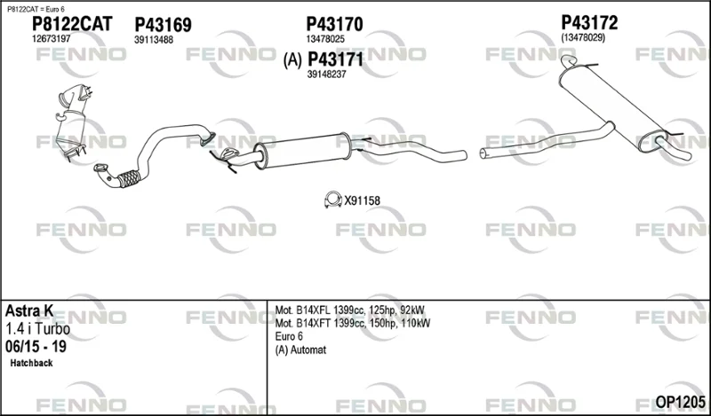 OPEL ASTRA K (B16) 1.4 Turbo (68) - Výfukový systém - kompletní od 6/2015 do 12/2022, 1399 ccm, 110 kW, 150 hp, B 14 XFT, D 14 XFT, Šikmá zadní část