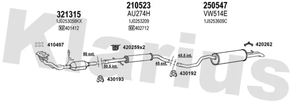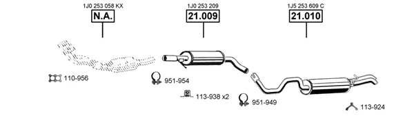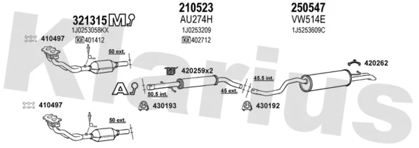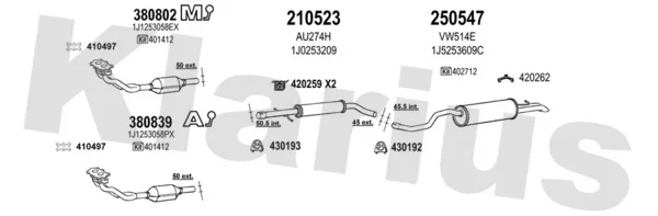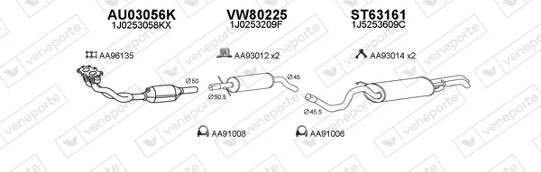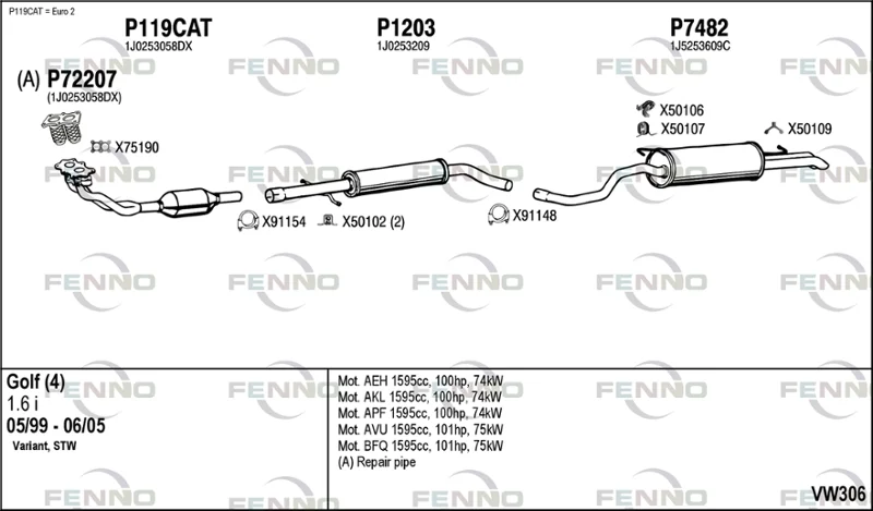 VW GOLF IV Variant (1J5) 1.6 - Výfukový systém - kompletní od 5/1999 do 4/2002, 1595 ccm, 74 kW, 101 hp, AEH, AKL, APF, kombi