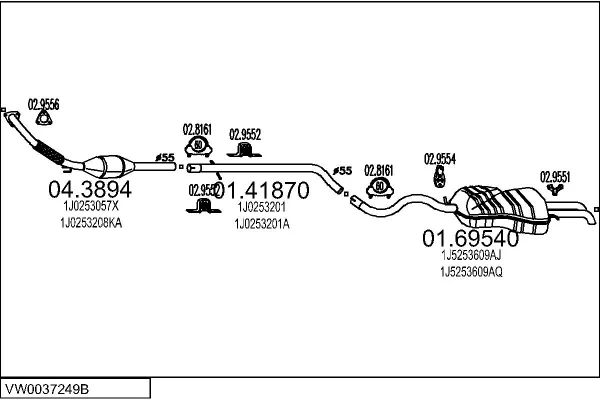 VW GOLF IV Variant (1J5) 1.9 TDI - Výfukový systém - kompletní od 5/1999 do 6/2001, 1896 ccm, 81 kW, 110 hp, AHF, ASV, kombi