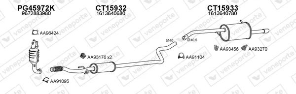 CITROËN C-ELYSEE (DD_) 1.2 VTi 82 - Výfukový systém - kompletní od 12/2014, 1199 ccm, 60 kW, 82 hp, HMZ (EB2), HMZ (EB2F), limuzína