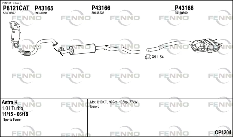 OPEL ASTRA K Sports Tourer (B16) 1.0 Turbo (35) - Výfukový systém - kompletní od 11/2015 do 12/2022, 999 ccm, 77 kW, 105 hp, B 10 XFL, D 10 XFL, kombi