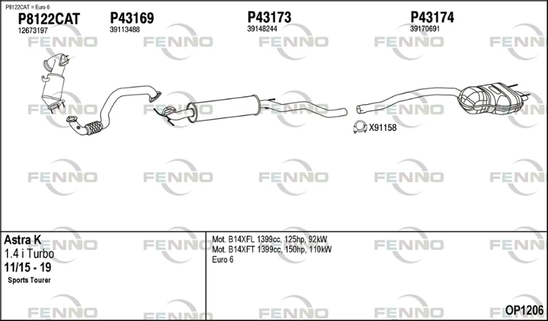 OPEL ASTRA K Sports Tourer (B16) 1.4 Turbo (35) - Výfukový systém - kompletní od 11/2015 do 12/2022, 1399 ccm, 92 kW, 125 hp, B 14 XFL, D 14 XFL, kombi