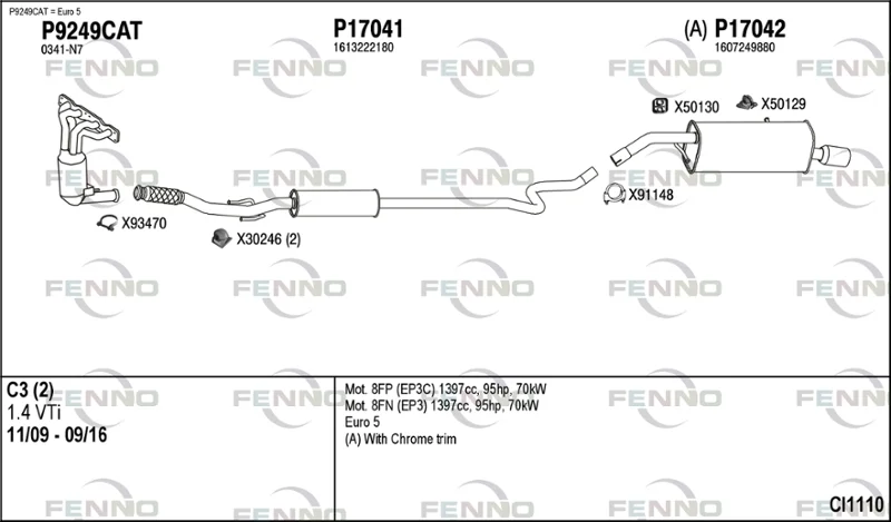 CITROËN C3 II (SC_) 1.4 VTi - Výfukový systém - kompletní od 11/2009 do 9/2016, 1397 ccm, 72 kW, 98 hp, 8FR (EP3), Šikmá zadní část
