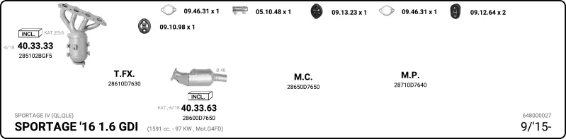KIA SPORTAGE IV (QL, QLE) 1.6 GDI - Výfukový systém - kompletní od 9/2015 do 9/2022, 1591 ccm, 97 kW, 132 hp, G4FD, SUV