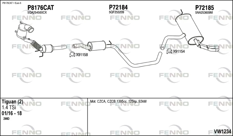 VW TIGUAN (AD1, AX1) 1.4 TSI - Výfukový systém - kompletní od 1/2016 do 3/2022, 1395 ccm, 92 kW, 125 hp, CZCA, CZDB, SUV