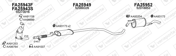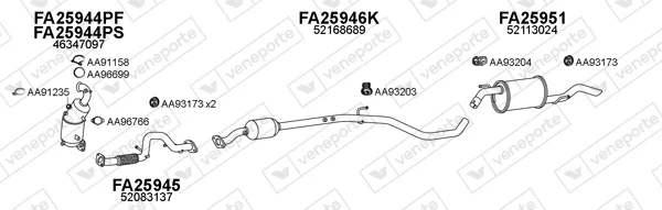 FIAT TIPO Šikmá zadní část (356_, 357_) 1.3 D (356HXH1A) - Výfukový systém - kompletní od 3/2016, 1248 ccm, 70 kW, 95 hp, 463 45 266, 552 66 963, 552 83 775, Šikmá zadní část