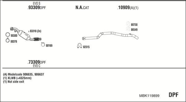 MERCEDES-BENZ SPRINTER 3,5-t Krabice (B906) 314 CDI 4x4 (906.631, 906.633, 906.635, 906.637) - Výfukový systém - kompletní od 5/2016 do 12/2018, 2143 ccm, 105 kW, 143 hp, OM 651.955, OM 651.956, Krabice