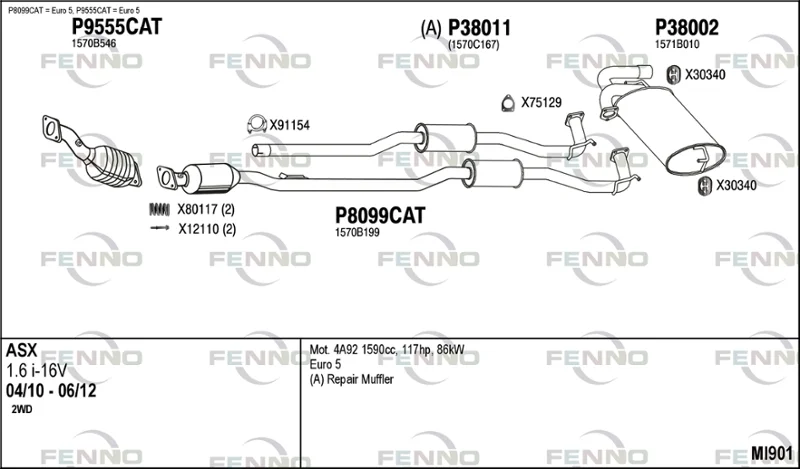 MITSUBISHI ASX (GA_W_) 1.6 MIVEC (GA1W) - Výfukový systém - kompletní od 5/2010, 1590 ccm, 85 kW, 116 hp, 4A92, SUV