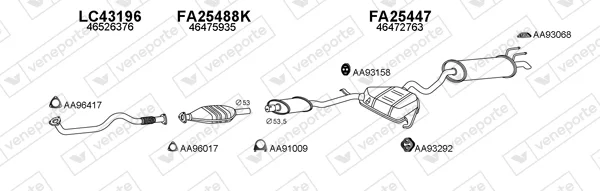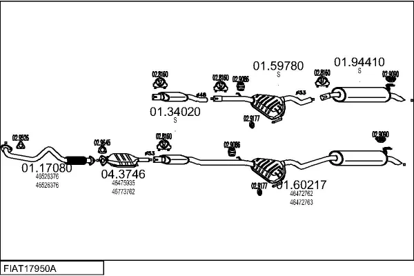 FIAT MAREA Weekend (185_) 2.4 JTD 130 - Výfukový systém - kompletní od 4/1999 do 5/2002, 2387 ccm, 96 kW, 130 hp, 185 A6.000, 839 A5.000, kombi