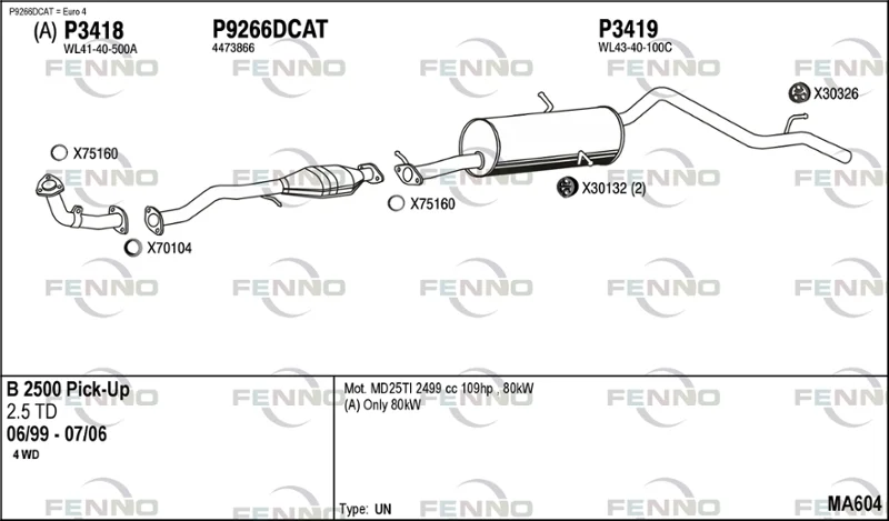 MAZDA B-SERIE (UN) 2.5 TD 4WD - Výfukový systém - kompletní od 6/1999 do 7/2006, 2499 ccm, 80 kW, 109 hp, MD25TI, R581, WL-T, WL84, WLF2, pick-up