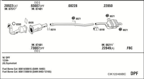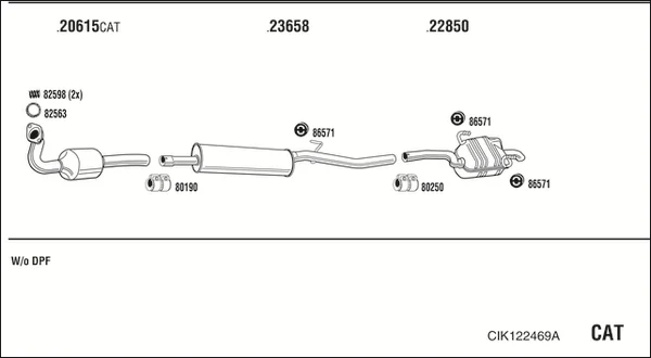 CITROËN C8 (EA_, EB_) 2.0 HDi - Výfukový systém - kompletní od 7/2002, 1997 ccm, 81 kW, 110 hp, RHT (DW10ATED4), velkoprostorová limuzína