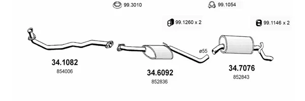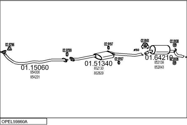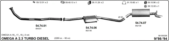 OPEL OMEGA A (V87) 2.3 TD (F19, M19, N19) - Výfukový systém - kompletní od 10/1986 do 8/1988, 2260 ccm, 66 kW, 90 hp, 23 YDT, limuzína