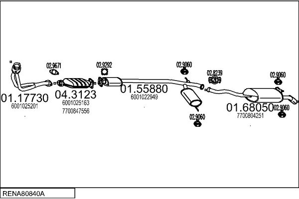RENAULT 19 I Cabriolet (D53_) 1.8 16V (D53D) - Výfukový systém - kompletní od 7/1991 do 4/1992, 1764 ccm, 101 kW, 137 hp, F7P 700, F7P 704, Kabriolet