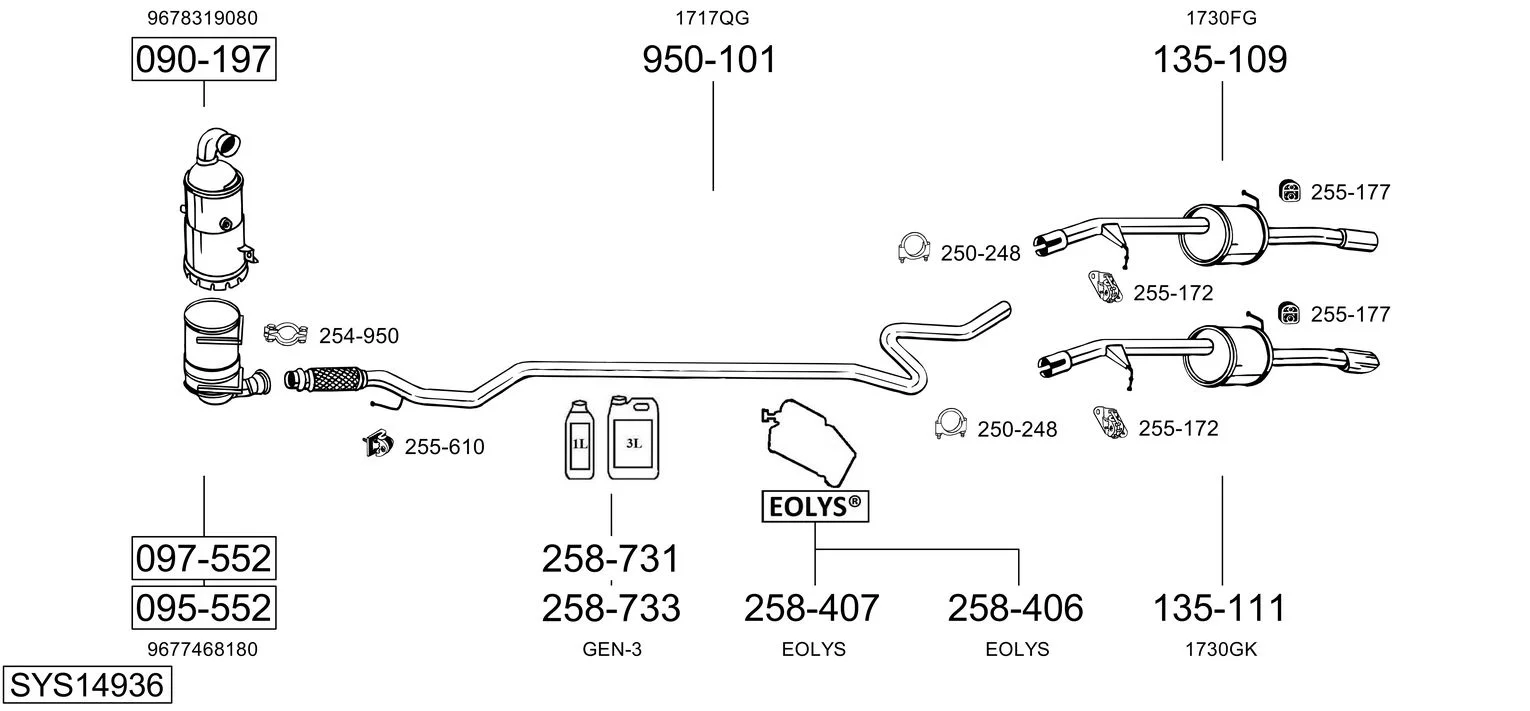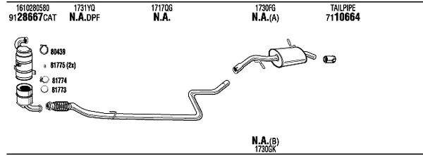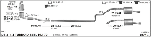 CITROËN DS3 (SA_) 1.4 HDi 70 (SA8HP4) - Výfukový systém - kompletní od 4/2010 do 7/2015, 1398 ccm, 50 kW, 68 hp, 8HP (DV4C), 8HR (DV4C), Šikmá zadní část