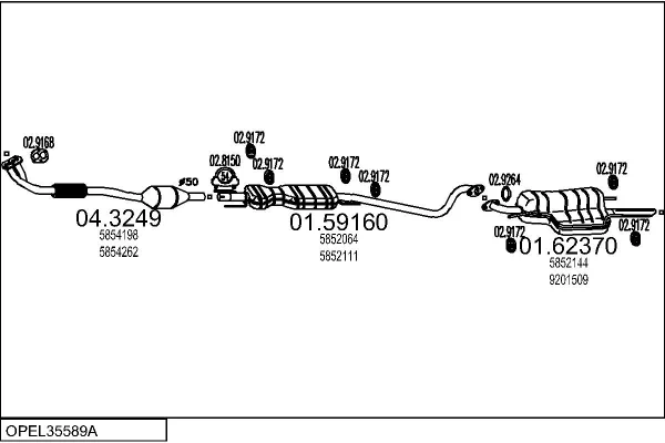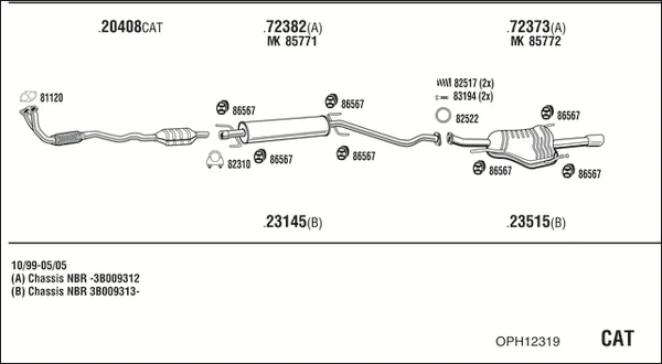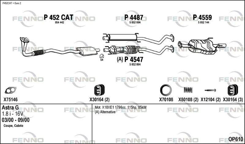 OPEL ASTRA G kupé (T98) 1.8 16V (F07) - Výfukový systém - kompletní od 3/2000 do 10/2000, 1796 ccm, 85 kW, 116 hp, X 18 XE1, kupé