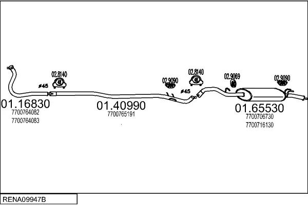 RENAULT 11 Schránky/šikmá záď (S37_) 1.1 (S371) - Výfukový systém - kompletní od 3/1983 do 6/1986, 1108 ccm, 35 kW, 48 hp, C1E 715, C1E 720, Schránky/šikmá záď