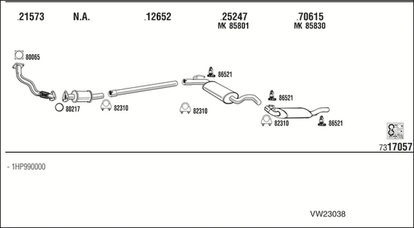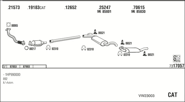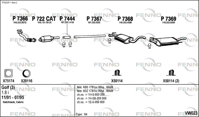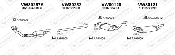 VW GOLF III Van (1H1) 1.8 - Výfukový systém - kompletní od 8/1991 do 12/1997, 1781 ccm, 66 kW, 90 hp, ABS, ADZ, Schránky/šikmá záď