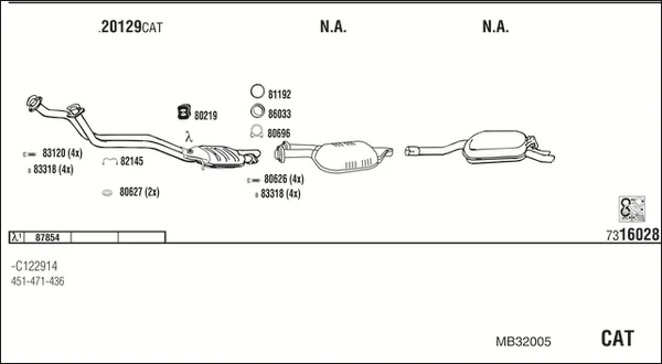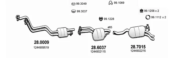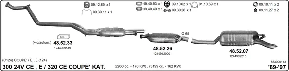 MERCEDES-BENZ 124 kupé (C124) 320 CE (124.052) - Výfukový systém - kompletní od 10/1992 do 5/1993, 3199 ccm, 162 kW, 220 hp, M 104.992, kupé