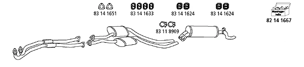 OPEL OMEGA A (V87) 3.0 (3000) (F19, M19, N19) - Výfukový systém - kompletní od 3/1987 do 9/1990, 2969 ccm, 130 kW, 177 hp, 30 NE, limuzína