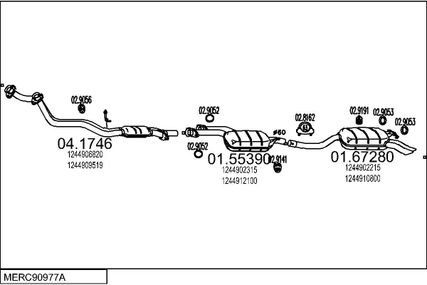 MERCEDES-BENZ 124 limuzína (W124) 320 E (124.032) - Výfukový systém - kompletní od 10/1992 do 6/1993, 3199 ccm, 162 kW, 220 hp, M 104.992, limuzína