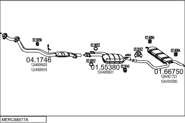 MERCEDES-BENZ 124 T-Model (S124) 320 TE (124.092) - Výfukový systém - kompletní od 10/1992 do 6/1993, 3199 ccm, 162 kW, 220 hp, M 104.992, kombi