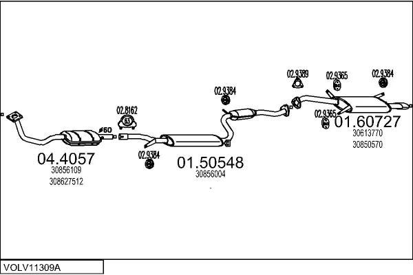 VOLVO S40 I (644) 2.0 T - Výfukový systém - kompletní od 10/1997 do 12/2003, 1948 ccm, 118 kW, 160 hp, B 4204 T, limuzína