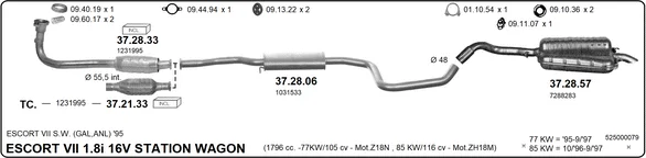 FORD ESCORT VI Turnier (GAL, ANL) 1.8 16V - Výfukový systém - kompletní od 1/1995 do 8/1995, 1796 ccm, 77 kW, 105 hp, RDA, kombi