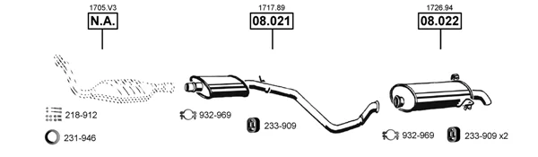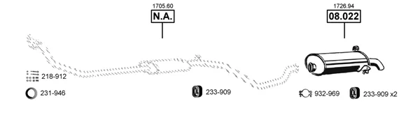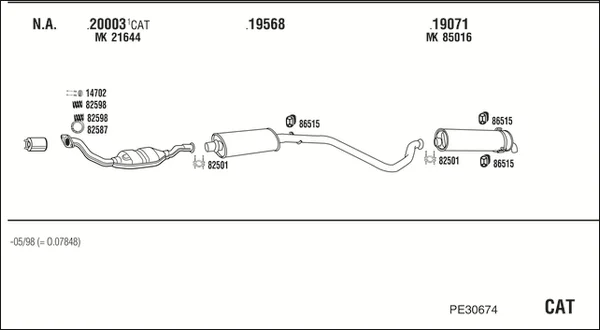 PEUGEOT 306 Šikmá zadní část (7A, 7C, N3, N5) 1.8 D - Výfukový systém - kompletní od 5/1993 do 5/2001, 1769 ccm, 43 kW, 58 hp, A9A (XUD7), Šikmá zadní část
