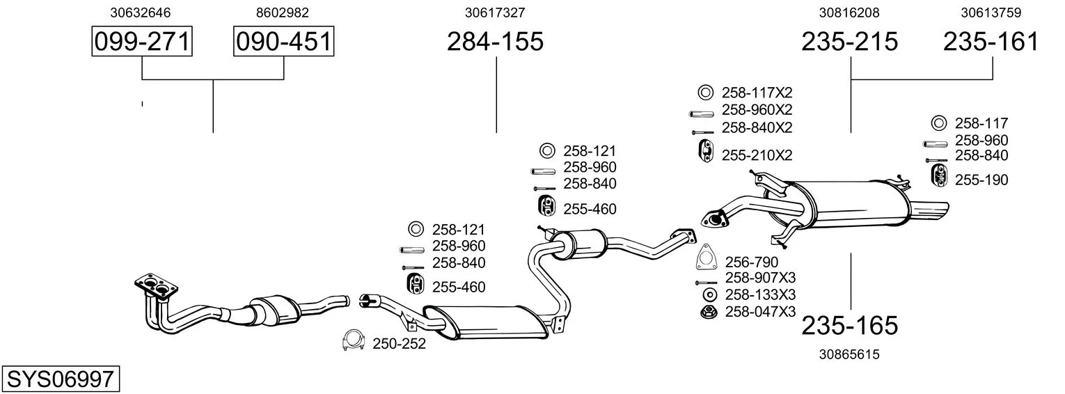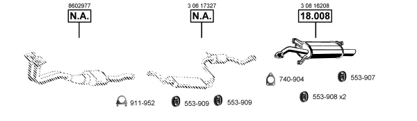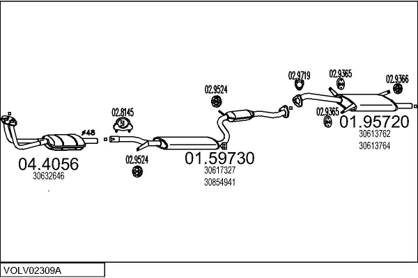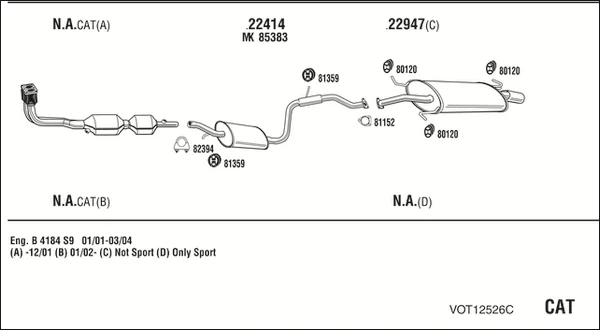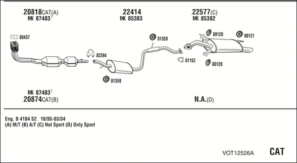 VOLVO S40 I (644) 1.8 - Výfukový systém - kompletní od 3/1999 do 12/2003, 1783 ccm, 90 kW, 122 hp, B 4184 S2, limuzína