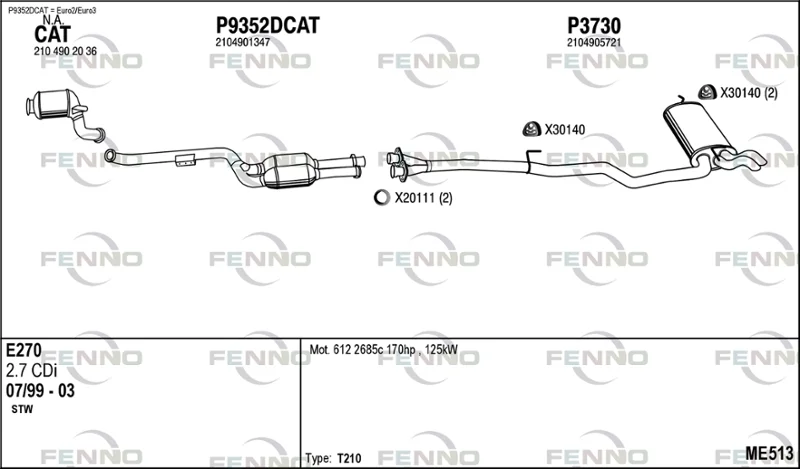 MERCEDES-BENZ E-CLASS T-Model (S210) E 270 T CDI (210.216) - Výfukový systém - kompletní od 7/1999 do 3/2003, 2685 ccm, 125 kW, 170 hp, OM 612.961, kombi