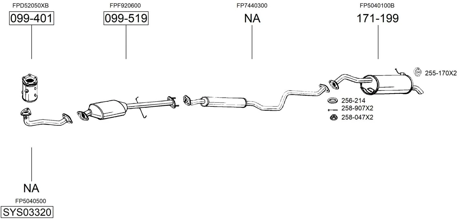 MAZDA PREMACY (CP) 1.9 (CP8W) - Výfukový systém - kompletní od 7/1999 do 3/2005, 1840 ccm, 74 kW, 100 hp, FP, velkoprostorová limuzína