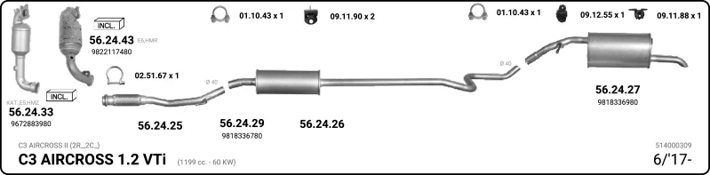 CITROËN C3 AIRCROSS II (2R_, 2C_) 1.2 PureTech 82 (2RHMRC, 2RHMZB) - Výfukový systém - kompletní od 6/2017, 1199 ccm, 60 kW, 82 hp, HMR (EB2FA), HMZ (EB2F), SUV
