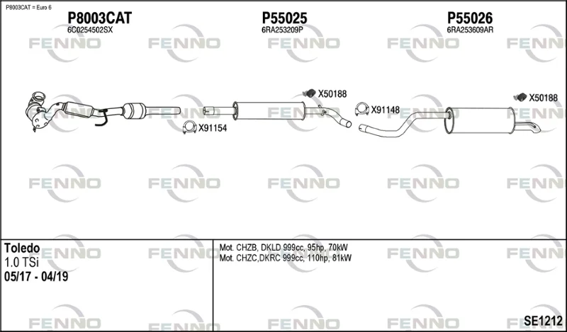 SEAT TOLEDO IV (KG3) 1.0 TSI - Výfukový systém - kompletní od 5/2017 do 4/2019, 999 ccm, 70 kW, 95 hp, CHZB, DKLD, Šikmá zadní část