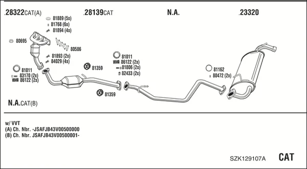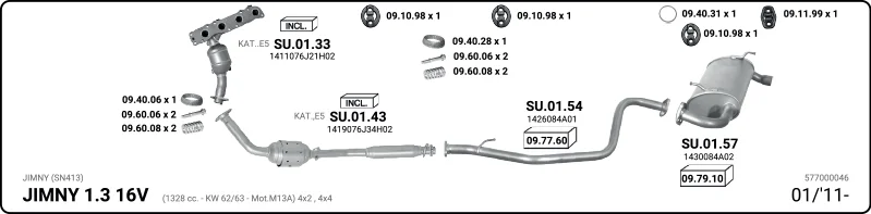 SUZUKI JIMNY otevřený terenní vůz (SN) 1.3 (SN413) - Výfukový systém - kompletní od 8/2004, 1328 ccm, 63 kW, 86 hp, M13A, otevřený terenní vůz