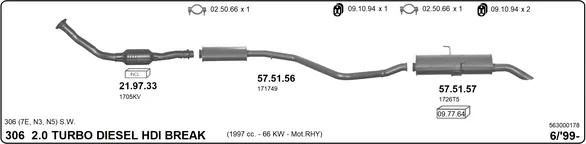 PEUGEOT 306 Break (7E, N3, N5) 2.0 HDI 90 - Výfukový systém - kompletní od 6/1999 do 4/2002, 1997 ccm, 66 kW, 90 hp, RHY (DW10TD), kombi
