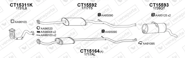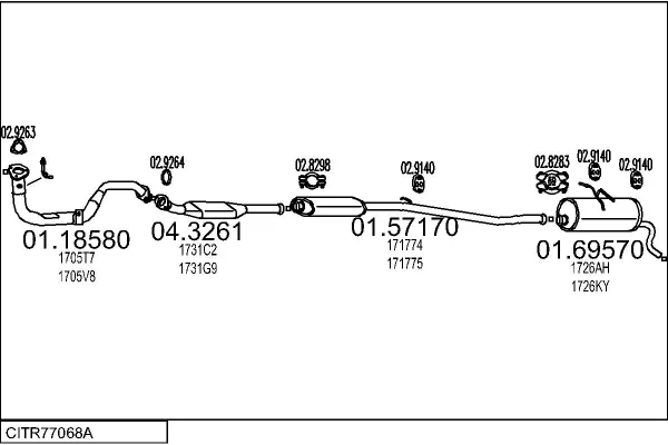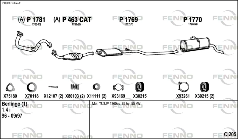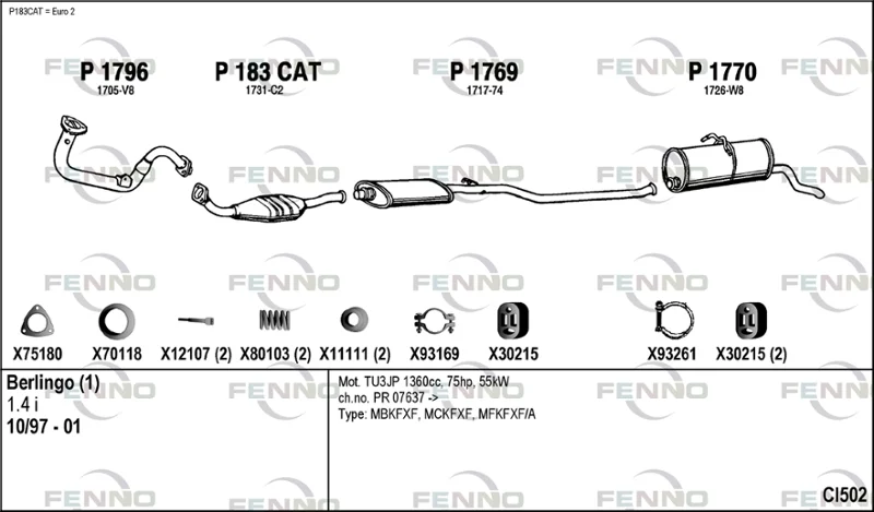CITROËN BERLINGO / BERLINGO FIRST Skříňová/velkoprostorová limuzína 1.4 BiFuel (MBKFXB, MCKFXB) - Výfukový systém - kompletní od 7/1996 do 10/2002, 1360 ccm, 55 kW, 75 hp, KFW (TU3JP), Skříňová/velkoprostorová limuzína