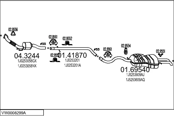 VW BORA I (1J2) 1.9 TDI - Výfukový systém - kompletní od 12/1998 do 1/2002, 1896 ccm, 85 kW, 115 hp, AJM, AUY, limuzína
