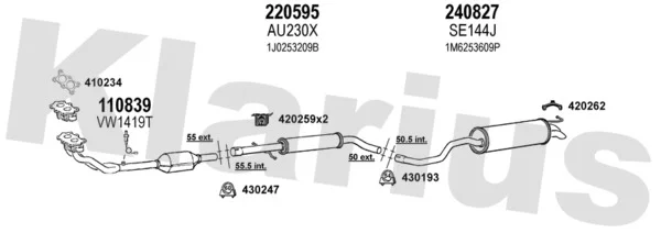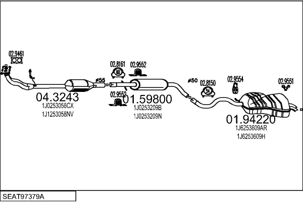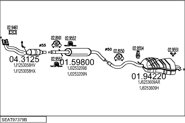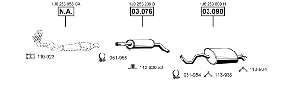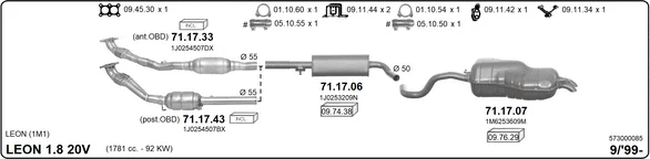 SEAT LEON (1M1) 1.8 20V - Výfukový systém - kompletní od 11/1999 do 6/2006, 1781 ccm, 92 kW, 125 hp, AGN, APG, Šikmá zadní část